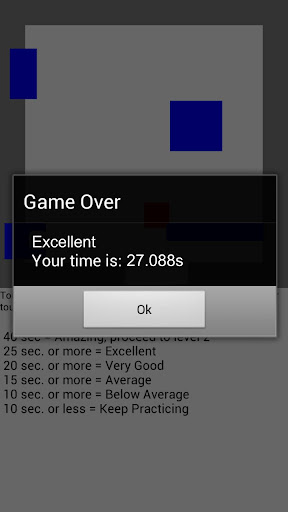 碰撞到任何藍色矩形終止該遊戲。你也可以不打在了牆上的屏幕。你以為你能生存多久?你甚至可以使2級?