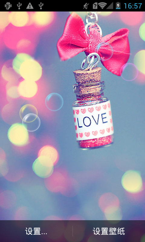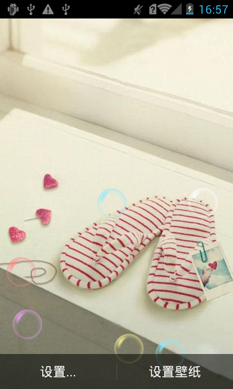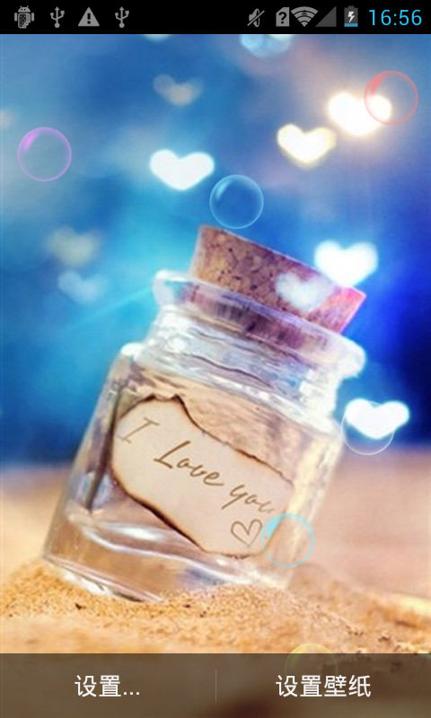 壁纸自带了梦幻泡泡,心形以及星星的特效。