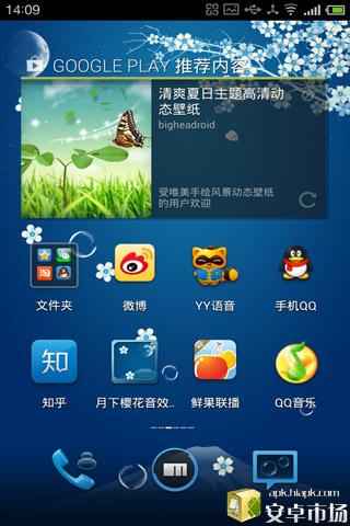 使用方法:下载安装后请在手机上的(MENU)-(壁纸)-(动态壁纸)里设置,或者通过长按桌面弹出的菜单进行设置。