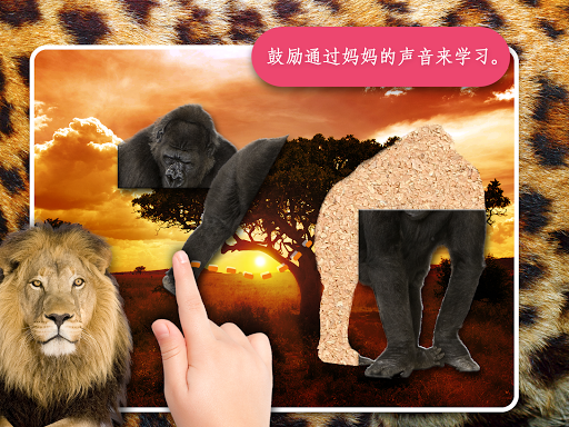 除了理解和學習每種動物發出的不同的聲音,每當移動每個拼圖一塊到每個不同的動物時,孩子們會知道這些聲音的不同之處。通過這種方式孩子們將不僅學習是聲音,也能識別他們正在玩這個拼圖遊戲的每個各自的動物。