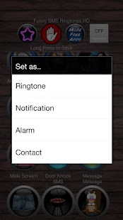 有趣的短信鈴聲和聲音設有78下載次數最多的搞笑短信鈴聲在一個易於使用的應用程序組合在一起。只需輕按一個按鈕,聽到相應的聲音。任何完美的文本消息警報的聲音很容易地設置您的默認鈴聲,SMS(通知)或報警聲。