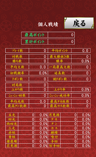 勝率、こいこい成功率、出来役回数などの各種戦績データが残ります。