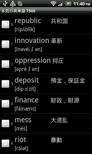 ・テストモードもありません:覚えていない英単語は、チェックをつけてひたすら覚えてください。
