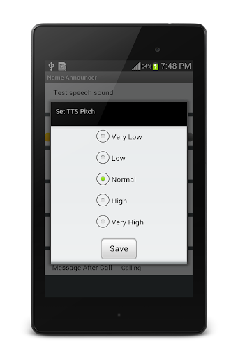 来电者姓名播音员讲出的话主叫方的姓名和手机短信发送者名称,以便您可以识别谁在呼叫没有寻找到您的手机。它甚至可以阅读短信内容给你。和最好的事情是,它是完全免费的。来电者姓名播音员使用内置Android文本到语音引擎语音来电或短信发件人ID。如果你的手机没有安装在您的手机文本到语音数据该程序将无法正常工作。您可以从谷歌播放/ App Store下载,它会文本到语音数据安装到您的手机,如果你的手机没有它预装。
