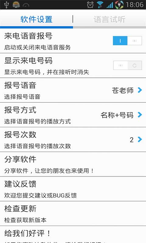 软件是一款来电辅助工具;来电时,手机自动播放联系人名称、号码,您无需拿起手机即可知道对方是谁。