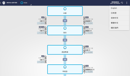 利用東京Metro提供的公開信息(open data),顯示每隔一分鐘更新的地鐵實時運行狀況。