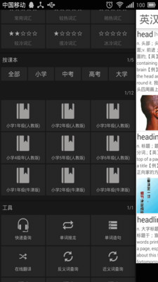 本软件离线包共包含18719个英文词汇及释义、例句、英文释义、正反义词,99本课本词库和词频分类等内容,多数词汇匹配精美配图、真人例句发音。是2014年春推出全新现代UI设计,无植入广告、无积分墙、离线检索,不消耗任何流量(自动检查更新和相关图片读音除外),完美支持Android4.0和Smartbar,通过多种方式快速检索的字典,是一个优秀的学习工具助手。