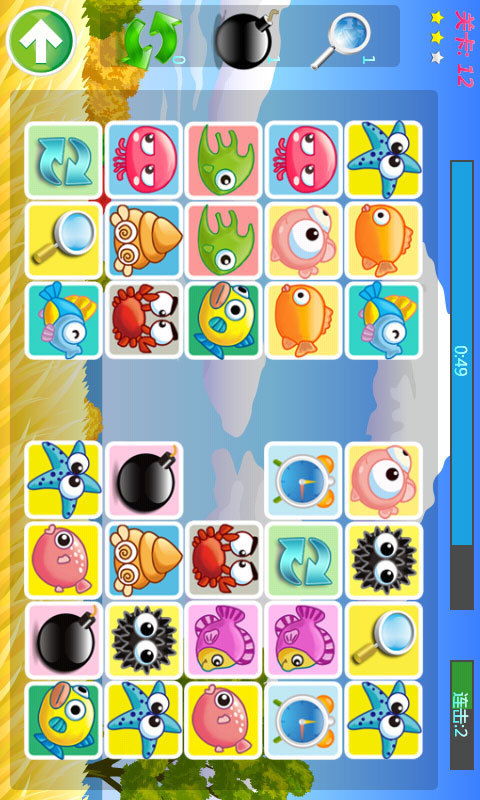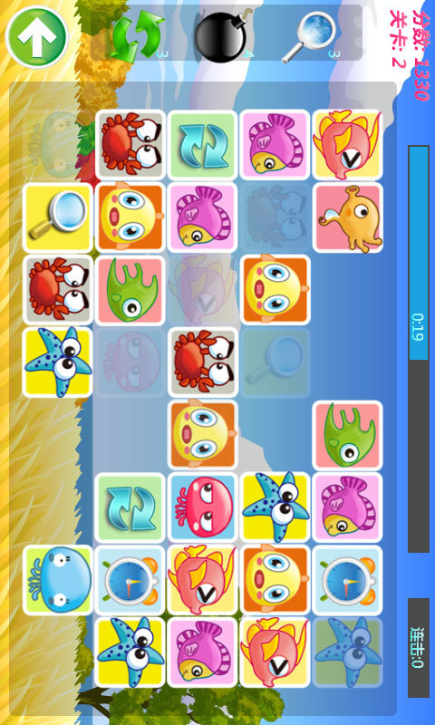 安卓平台最好玩的连连看游戏.>>>>>>>>>> 连连看玩法 <<<<<<<<<<<将2个相同的图标连接起来,连线转弯数不多于 3 次,就可以成功消除一对图标.图案全部消除即可过关.>>>>>>>>>>11种棋盘变化<<<<<<<<<<<1:不变化 2:向上3:向下4:向左5:向右 6:上下分离 7:左右分离 8:上下集中 9:左右集中 10:向外扩散11:向内集中>>>>>>>>>>36关休闲模式<<<<<<<<<<<休闲模式适合新手玩家,图标数从4*4到10*6逐渐增加.难度也逐渐增大.>>>>>>>>>>无限经典模式<<<<<<<<<<<经典模式通过消除图标得到相应分数,关卡越高难度越大,并且支持全球排行榜.>>>>>>>>>>>>>挑战模式<<<<<<<<<<<<>>>>>>>>>>>> 工具 <<<<<<<<<<<<<<<洗牌:将图案随机重新排序查找:自动消除一对图标炸弹:消除选中的所有相同的图标>>>>>>>>>>>> 排行榜 <<<<<<<<<<<<<上传经典模式最高分,即可和全球玩家一比高下.V1.98更新日志:1:修改崩溃的BUG2:优化性能和美化界面 V1.97更新日志:1:优化性能2:增加繁体语言支持V1.94更新日志:1:调整时间算法2:优化性能