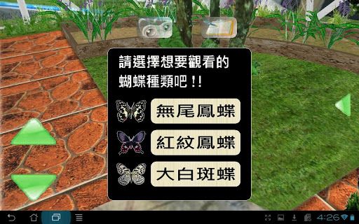 在虛擬蝴蝶園中可以使用追蹤望遠鏡觀察蝴蝶,也能捕捉蝴蝶來取得相關資訊。