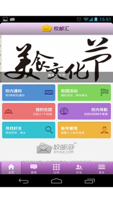 校邮汇主要由网站、客户端以及邮箱三大组成部分。她致力于高校,服务于学生,是一个面向高校大学生的综合信息服务平台,集活动频道、课件频道、应用频道、迎新频道等多频道为一体,旨在为高校大学生们提供校内通知、活动、课件、兼职全职等服务!