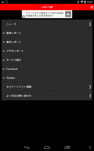 「株・投信情報」アプリに掲載されている情報は、金融商品取引法に基づく広告等の表示要件を満たしておりません。当アプリは金融機関毎にカスタマイズが可能です。ご興味のある販売会社本部の方は、下記までご連絡ください。(お問合せ:モーニングスター営業企画部 mstar@morningstar.co.jp)