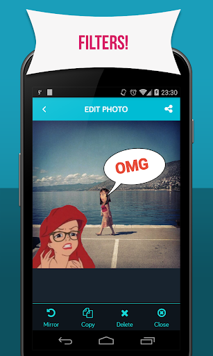 梅梅照片编辑器是目前更好的改善。它包含了大量(超过350),梅梅的脸,你可以调整大小,翻转和改变方向。所有选项都是简单和直观。