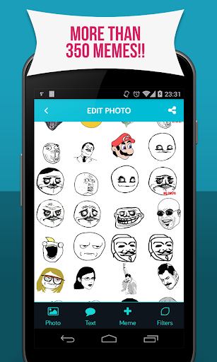 巨魔你的朋友和同事用这个有趣的应用程序梅梅照片编辑器!交换愤怒的脸,你的照片添加文本和愚蠢的滤镜效果!