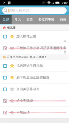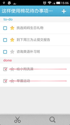 一款任务管理软件,支持建立文件夹为事项归档,当然也可以在主界面中点按右上角的加号快速创建待办事项。点击代办事项可以添加描述和设置提醒闹铃,支持事 情发生前提醒和重复提醒功能,还有10种有爱提醒铃声可选。点击主界面中的剪刀按钮可多选删除事项,移动事项顺序及移动事项至文件夹内。在设置中还可以更 换字体,为软件加锁。