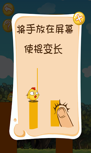第一步!让小鸡英雄用他那神器的棍子跨过高台.看看你能走多远?boys and girs 行动起来吧,真正的表演开始了