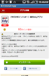 楽天 Install Appに掲載されるAndroidアプリは、会員登録や