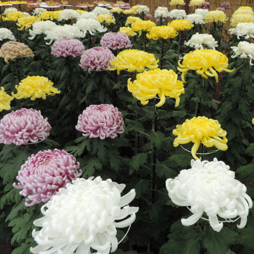 日本での菊は、薬草や観賞用植物として平安時代より用いられ、宮中では菊の節句とも呼ばれる重陽の節句(旧暦9月9日)が明治時代まで行われ、現在でも皇室園遊会(観菊御宴)として行われている。日本で菊の栽培が盛んになったのは、栽培のプロセスが冬に芽をとり、春に植え、夏に成長させ、秋に観賞するといった具合で、イネの栽培と類似していることが影響しているとの説がある。現在では各地に愛好会ができる一方で、秋にはそれらが主催の品評会が開かれている。