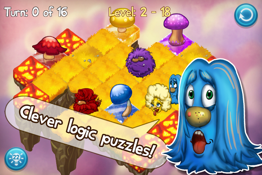 这是一个改良的现代扔球游戏。简单来说,游戏中的各色毛毛球需要吃掉本色蘑菇。每个水平一般有3个毛毛球和3颗蘑菇。您需要用所有毛毛球吃掉蘑菇。您每移动一步,蘑菇就会再腐烂一点。如果移动步骤过多,蘑菇就会烂得无法再吃,您就必须重新开始或取消某些移动步骤,找出错误的移动步骤。