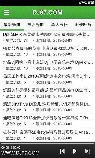 水晶Dj网是国内知名的专业Dj网站,其合作Dj伙伴遍及全国各大城市,拥有广阔的Dj和舞曲爱好者的支持、完善的服务体系,旨在推广国内舞曲广泛传播并引领舞曲潮流,水晶Dj网应用汇集了现场舞曲、中文舞曲、Club、Hip-Hop、R&B;、慢摇舞曲等各类型舞曲的免费在线试听。所有舞曲均由唱片公司及原创音乐人录制上传。
