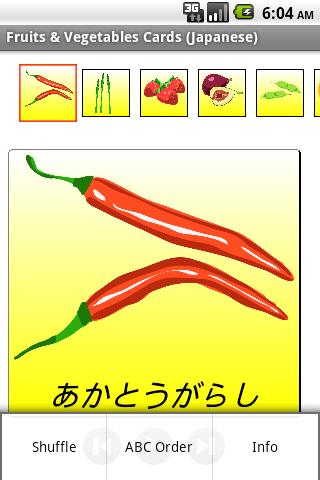《水果蔬菜卡片》是随时随地学习日文的应用软件。它为从婴幼儿到成年人各个年龄阶段的人士提供了在日常生活中接触多种语言的学习环境。