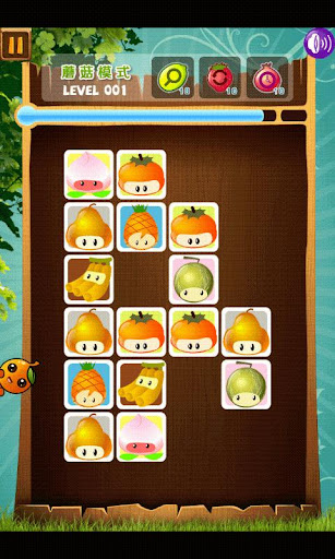 将两个相同的水果连接起来,连接线不多于3根直线,就可以将它们消除。