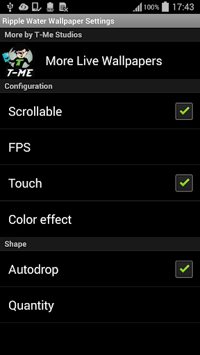 您可以增加元素的大小、速度,或者密度,还可以选择三种不同的颜色效果和三种不同的颜色强度。若要自定义,打开应用,点击“设置Live Wallpaper”,然后点击“设置”