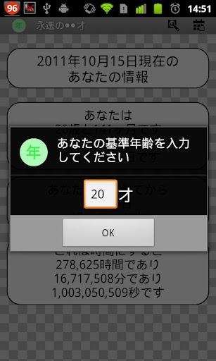 人に年を聞かれた時はこのアプリを立ち上げて20才217か月といった具合に答えてあげましょう。