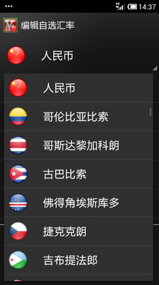 1.点击菜单按钮(手机右键或左键),选择“编辑自选汇率”,“编辑自选汇率”窗口便会打开。添加要兑换的货币,或删除要兑换的货币