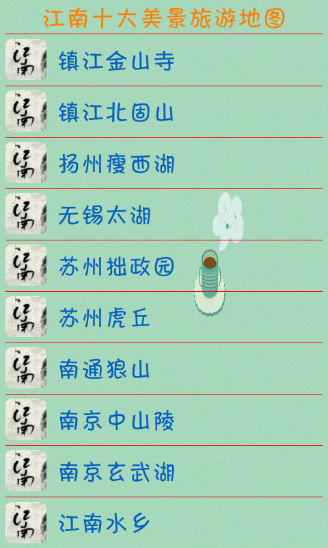 在不同历史时期,江南的文学意象不尽相同在历史上江南是一个文教发达、美丽富庶的地区,它反映了古代人民对美好生活的向往,是人们心目中的世外桃源从古至今江南一直是个不断变化、富有伸缩性的地域概念本应用主要介绍了江南十大美景的详细旅游地图,以及详细的攻略和路线,帮助喜欢旅游的朋友做好江南游玩的准备