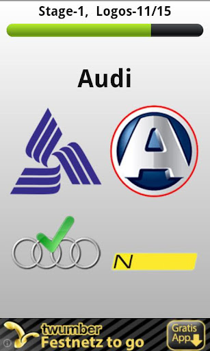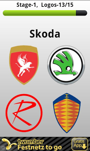 在每一個階段,它有超過15個汽車標誌考考你沒有時間限制的猜測。