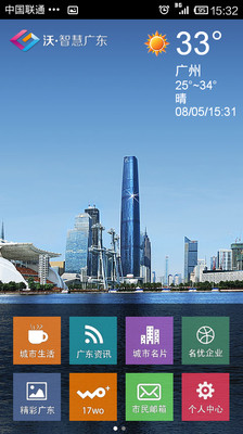 以政府主导的智慧城市打造为引领,顺应移动互联网及智能终端高速发展的趋势,借力广东联通精品3G网络,整合各类惠民强企的应用和内容,广东联通聚焦构建沃.智慧广东移动互联网公共服务平台,并以此为基础,推出一系列以手机客户端为载体的城市名片应用,助力我省及各地市城市信息化品牌的打造及各类精品应用内容的普及推广。其中,沃.智慧广东客户端作为广东联通城市名片省级统一入口 ,主要分为精彩广东、城市名片、城市生活、城市资讯、政务公开、名优企业、城市微博等主要功能模块,从经济、文化、政治、民生等多方面、立体式的展现了广东在移动互联网时代,是广东在移动互联网时代新兴的服务、宣传窗口!