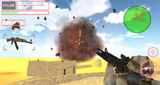 沙漠射擊戰是在沙地環境愛國軍人的戰爭。你的空軍拋出靠近你的敵人的基地,你需要清除的區域。你士兵配備有多個武器系統。敵人還配備了先進的武器系統。瞄準你的目標,他們拍攝並完成任務。