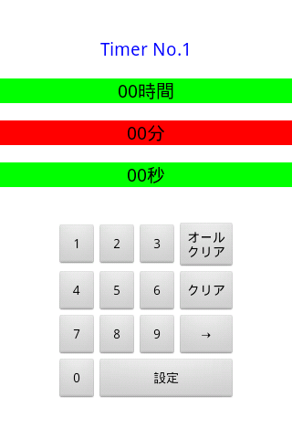 設定ボタンでそのタイマーの時分秒を設定する画面に遷移します。