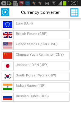 - 货币转换器:欧元,英镑,美元,中国佑安,日元,韩元,卢比,俄罗斯卢布(离线)