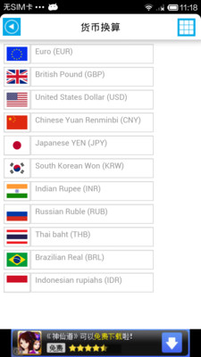 - 货币转换器:欧元,英镑,美元,人民币,日元,韩元,卢比,俄罗斯卢布(离线)