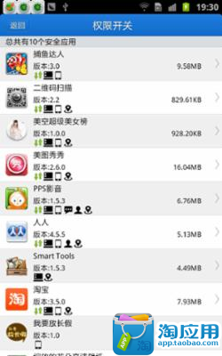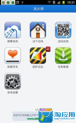在下载过程中,洗大师自动帮您清洗您下载的软件,清洗掉软件中的安全隐患。软件安装后,您可以在权限管理里面查看该应用的权限,您也可以通过权限开关控制权限。