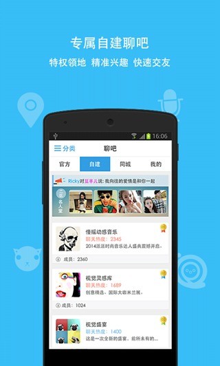 派派——真人交友,1分钟交到新朋友!派派-同城单身交友聊天约会神器,想和陌生人聊天交友吗?派派让你随时随地认识附近的人,与有缘人在聊吧里相聚,快速交友!跟喜欢的TA来场浪漫约会吧!缘来就是你!【特色功能】1.同城聊吧:无聊的时候没人陪你一起打发时间吗?来最火的同城兴趣聊吧,互动型社区应用!2.免费通话:随时随地进行高品质的免费通话,沟通无门槛。3.炫酷表情:发送丰富的“动态表情”,表达文字所不能表达的情感,好玩又免费,还是高清全屏表情喔!4.动作特技:动态表情还不够刺激?那就直接“动”他一下!全屏的“动作特技”抒发你的一切情感,彻底震撼对面的“Ta”!派派官网:http://www.17paipai.cnQQ交流群号:255273812派派客服:400-001-0298