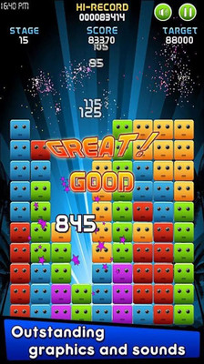 3.每一关有规定剩余方块的限制,剩下的方块数超过限制游戏结束。