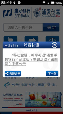 上海浦东发展银行推出手机银行(企业版)Android客户端服务软件,根据Android手机的特点,向企业、事业单位的高管和财务人员提供便捷、高效的公司电子金融服务,使用任何品牌电信运营商网络或无线WIFI网络都可轻松登录。 “移动金融,创富随行”!浦发手机银行(企业版)Android客户端软件,汇聚众多实用功能,伴您尽享移动金融好生活。 主要功能: 1、移动办公室 输入签约手机号码并进行身份认证后,可随时开展信息查询、转账支付、投资理财、集团管理等交易,以及各类金融交易的授权业务,让企业、事业单位的高管和财务人员不受时空限制,随心掌握各类存贷款和票据信息,完成业务审核及各类金融交易。其中信息查询不仅涵盖了企业、事业单位在我行所有存、贷款和票据信息的查询,而且包括网银互联账户信息查询,帮助企业、事业单位的高管和财务人员随时掌握跨行账户的余额和交易情况;投资理财服务涵盖了定期、通知、利多多存款交易和理财产品的查询、购买服务,帮助企业、事业单位把握投资先机;集团服务提供集团关系和下属单位的各类存贷款和票据信息,帮助集团企业随时掌控下属单位的金融业务;转账支付交易和各类金融交易授权服务支持网银、银企直连等跨渠道业务的交叉处理,让企业、事业单位充分感受浦发银行以客户为中心,打造的多渠道整合的公司电子金融服务,以及便捷、高效、多样化的服务体验! 2、办公工具 提供行号查询、浦发网点等服务信息! 3、金融信息 提供本外币存贷款利率、外汇牌价等金融信息! 4、生活服务 提供存、贷款利息计算器轻松,以及浦发信用卡特惠商户等信息,您随身的吃喝玩乐专家! 5、浦发快讯 提供浦发银行公司电子银行业务的各类营销活动信息和公告信息。 6、娱乐天地 提供电影票预订等娱乐服务。