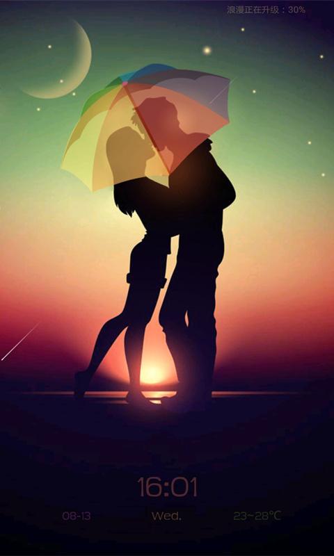 浪漫主题,浪漫月夜,唯美流星雨,爱情非主流壁纸锁屏,将情侣的伞拉下解锁。