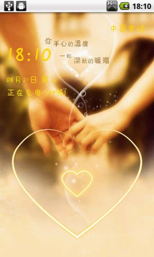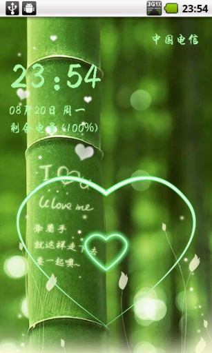 本应用为一款非常唯美的爱之心屏幕锁,有两条唯美的线条围绕桃心路径运动,画面灰常唯美。您可以根据自己的喜好来设置背景,锁屏图形的颜色,字体的样式和颜色,解锁密码,锁屏界面的快捷方式等。将内部的小图形拖出外圈上,然后松开手指即可解锁。本应用小巧简单,占系统资源少。有意见或建议可以使用反馈信息功能来联系。email:bobliuwei@126.com