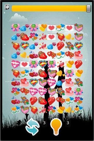 浪漫爱情连连看是一个简单好玩的消磨时间的小游戏。操作方法跟其它的连连看游戏一样。 连续点击2个相同的图标,如果它们之前能够用线条连接,而且线条不超过3根,就可以消掉。