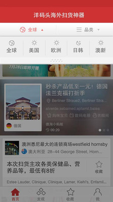 让你足不出户,滑动指尖,即可同步享受全球各卖场/商场/outlets最震撼的折扣促销。