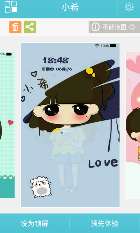 一款网上很火的卡通形象,超可爱的小希,看着就让人喜欢。多张可爱小希壁纸任意挑选,除此之外锁屏还加入划屏,个性签名等娱乐神器,既好看又防隐私的锁屏,赶快来体验吧!女生必备哦!