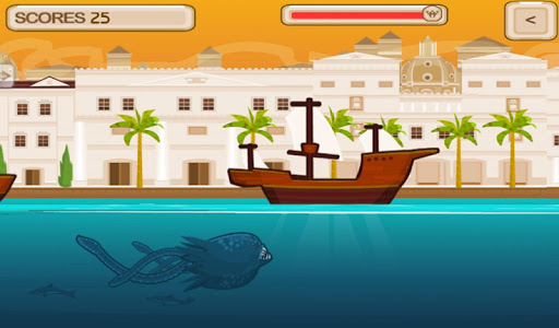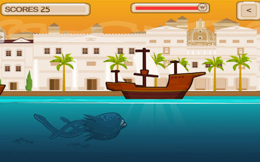 遊戲介紹:《深海巨獸》是一款橫向滾軸移動海戰遊戲,遊戲中的主角就是龐大的深海巨獸,玩家可以操控巨獸襲擊海面上的船隻,更可以一躍而起將空中的飛艇直接拖入海底! ! !