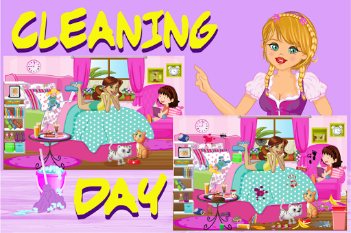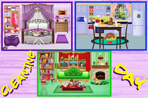 嗨,大家好!我们提供了一个游戏叫清洁日。我们的游戏是免费的。我们的游戏包括四个部分。我们的游戏是一个游戏很好玩,教育和开发者的关注。我们给你我们的游戏了一段时间。他需要时间来完成我们的游戏。如果你没有完成的时间重新启动。我们玩的厨房,客厅,卧室和儿童房组成。清洁我们的游戏,在左上角有清洁的材料和工具,我们可以清洗。清洁你是否可以很容易的一天。祝好运......