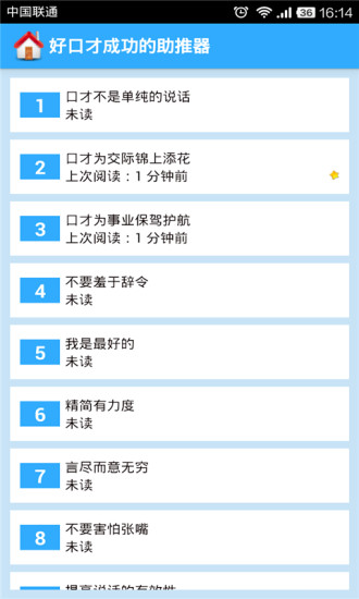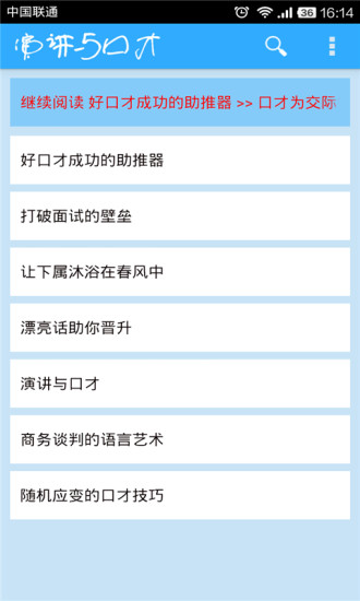 好口才才能成为好人才。口才是可以培养的。本软件能辅助您练习演讲与口才,教您打破面试的壁垒,让您学会如何同上级处理好关系,教会你漂亮话,助你步步高升,让您在一场场的上午谈判中占尽先机......