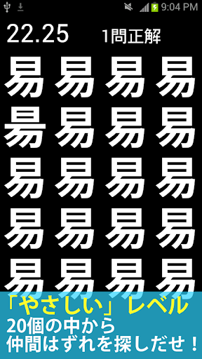 違った漢字を1つ探しだす漢字間違い探しゲームです。