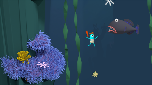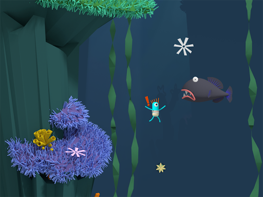 忘了告訴妳,外星哥肺活量很小,妳需要讓他不斷吃到氣泡才能保持呼吸.另外,他不怎麽喜歡魚