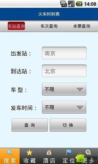 百万用户首选Android火车时刻表,可随时随地查询到列车的运行时间,路线,天气,票价,余票等.新增酒店预订功能,现在预订可享现金返还优惠.新增车票预订功能.